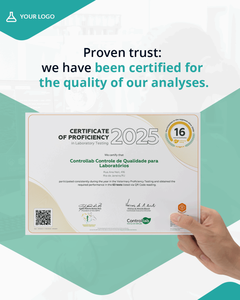 It is the evidence of your laboratory’s commitment to quality and excellence in the analyses performed. In addition to being a technical recognition, the certificate demonstrates credibility, transparency, and differentiation in the market.