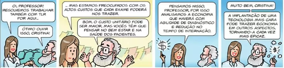 Numa análise preliminar, parece até paradoxal o crescimento que se vê em alguns países para uma tecnologia mais cara. Mas essa análise simplista de custos não pode ser aplicada ao TLR: ao se avaliar o impacto financeiro do TLR, é preciso analisar o custo total dos cuidados médicos naquela situação específica, e não apenas o custo isolado do teste. Isso torna a análise de custo-benefício do TLR muito mais complexa, porque muitos dos benefícios são difíceis de serem quantificados pelos métodos convencionais de análise de custo-benefício no laboratório clínico. Alguns exemplos são as vantagens que o TLR e seu resultado rápido podem trazer na redução do tempo de internação, na mortalidade, nas medicações etc. É importante lembrar que novas tecnologias, como os TLR, devem ser implementadas, apesar de um custo mais alto por teste, desde que elas, direta ou indiretamente, reduzam os custos totais. Ou, ainda, desde que aumentem a efetividade do sistema de saúde, garantindo também a segurança do paciente.
