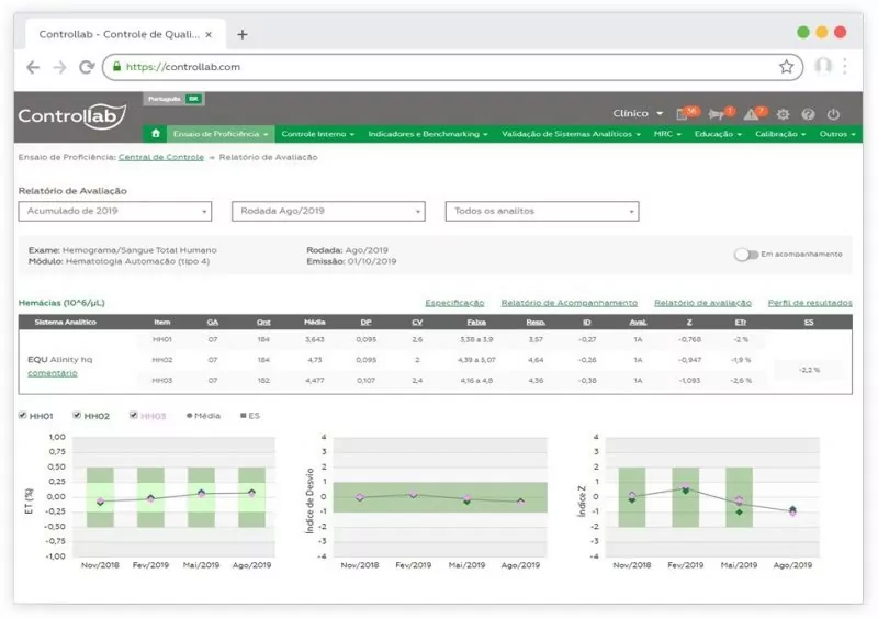 Después de la comparación entre laboratorios, los gráficos están disponibles en el Sistema Online de Controllab para analizar tendencias y ayudar a prevenir e identificar las causas de resultados no conformes. En el mismo sistema, se pueden registrar sus historiales para rastrear el rendimiento de los resultados.